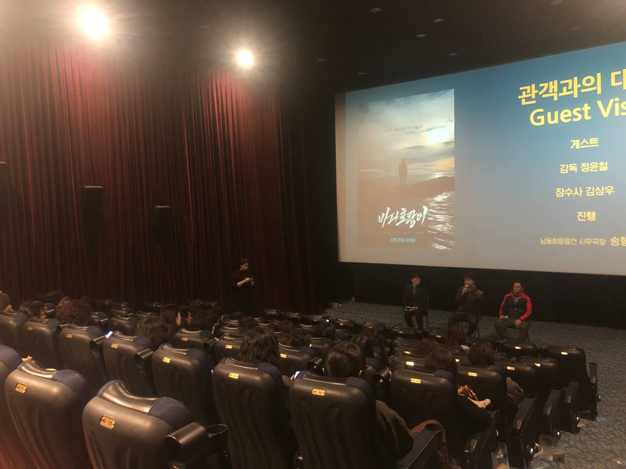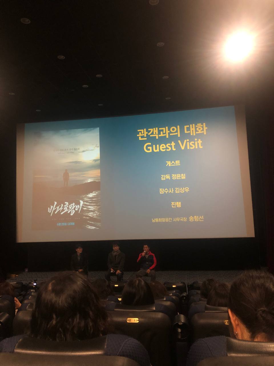 영화 상영 후에는 정윤철 감독님, 김상우잠수사님과 직접 만나는 GV(관객과의 대화)가 이어졌습니다.
